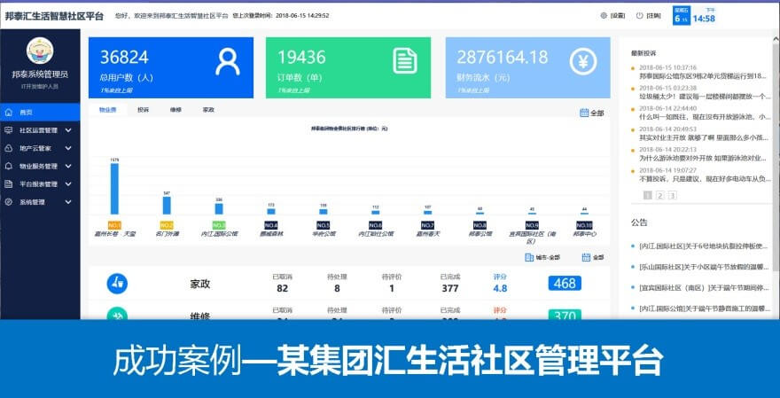 丨概述 智慧社區(qū)解決方案以物業(yè)為核心,覆蓋居民、物業(yè)、周邊商家、地產(chǎn)開(kāi)發(fā)商,打造智慧社區(qū)生態(tài)圈,挖掘社區(qū)范圍內(nèi)外資源潛力,建設(shè)高效、信息發(fā)達(dá)、經(jīng)濟(jì)繁榮的新型現(xiàn)代化社區(qū)服務(wù)。“One家”是新東網(wǎng)自主研發(fā)、運(yùn)營(yíng)的智慧社區(qū)產(chǎn)品,為社區(qū)業(yè)主提供吃、喝、玩、樂(lè)、康、健、娛、文、教、公“一站式”服務(wù),為物業(yè)和地產(chǎn)增加多元化收益,提高業(yè)主滿意度、降低運(yùn)營(yíng)成本。 丨優(yōu)勢(shì) 提供“一站式社區(qū)平臺(tái)”,為社區(qū)業(yè)主提供高效社區(qū)服務(wù)、便捷生活體驗(yàn)和行使業(yè)主權(quán)利,為物業(yè)和地產(chǎn)增加多元化收益、提高業(yè)主滿意度和降低運(yùn)營(yíng)成本。 丨案例 1、四川邦泰物業(yè)有限公司樂(lè)山分公司 2、中國(guó)電信股份有限公司成都分公司 3、新希望地產(chǎn) One家社區(qū) 丨概述 由新東網(wǎng)科技自主研發(fā)和運(yùn)營(yíng)的智慧社區(qū)平臺(tái),以物業(yè)為核心,覆蓋居民、物業(yè)和周邊地產(chǎn)商,打造智慧社區(qū)生態(tài)圈,挖掘社區(qū)范圍內(nèi)外資源潛力,為社區(qū)業(yè)務(wù)提供“一站式”服務(wù);為物業(yè)和地產(chǎn)增加多元化收益,提高業(yè)務(wù)滿意度、降低運(yùn)營(yíng)成本。 丨成功案例